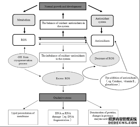 Fig.1 Effect of antioxidants to the pro-oxidant/antioxidant balance in the cryopreservation
